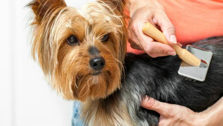 Thin, delicate coats (Yorkies, Maltese, etc.): Brush with and against the coat's grain using a wire-pin brush and a soft slicker brush for tangles and mats.